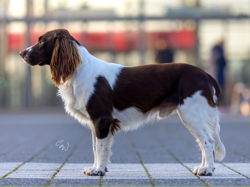 Keskikokoinen, tiivisrakenteinen, kohtuullisen vankkaluustoinen koira, hyvin liikkuvainen ja sitkeä vaikeissakin maastoissa niin pelloilla, niityillä, soilla, kaislikoissa kuin vedessäkin. Raajat ovat melko voimakasluustoiset. Korvat ovat riippuvat ja hapsuttuneet, hapsuja on myös hännässä, vatsan alla ja raajojen takaosassa. Väritys on useimmiten suklaanruskea kimo, jossa on eri sävyisiä laikkuja (ruskea pigmentti), harvemmin mustakimo. Joskus koiralla voi myös olla kellertävänruskeat tan-merkit. Tyypillinen piirre on valkoinen hännänpää.